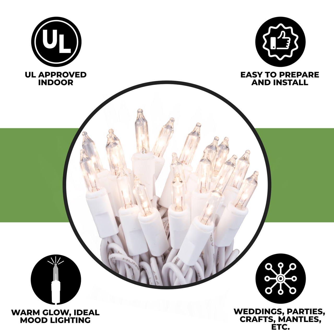 Our 35 count count Christmas lights on white cord are great for crafts, holiday decorating, centerpieces and events and parties such as weddings, baby showers, etc.