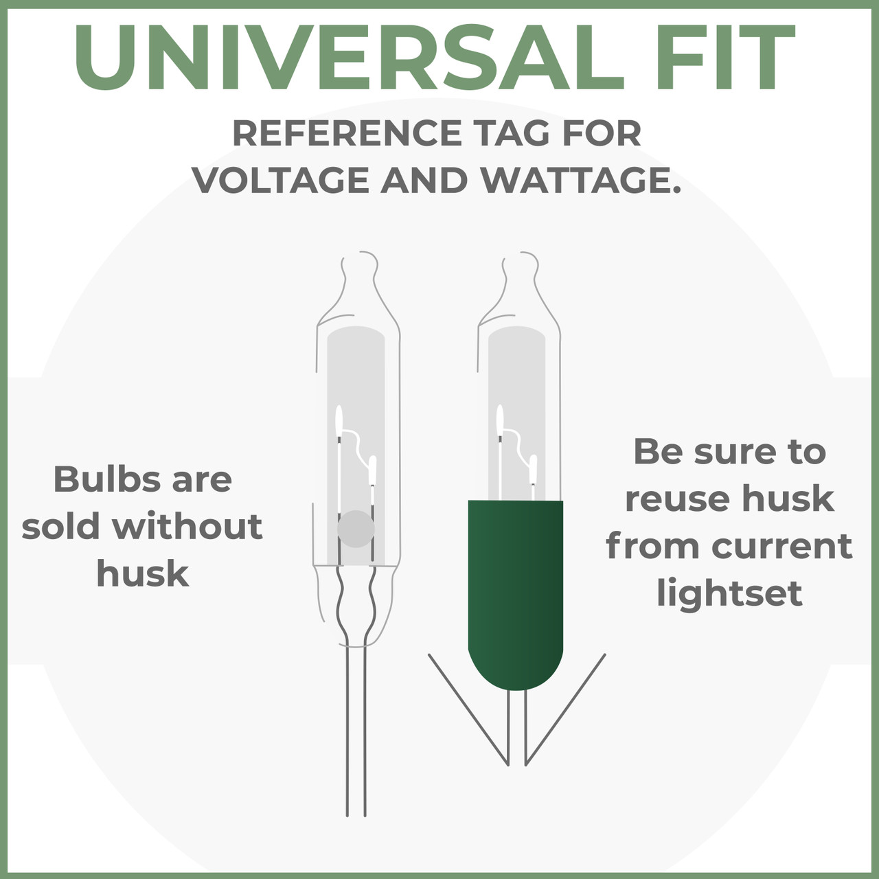 12 Volt Mini Christmas Replacement Bulbs for Incandescent String Lights, Pinched Base, 20 Count, 80 mA, 0.96 Watt