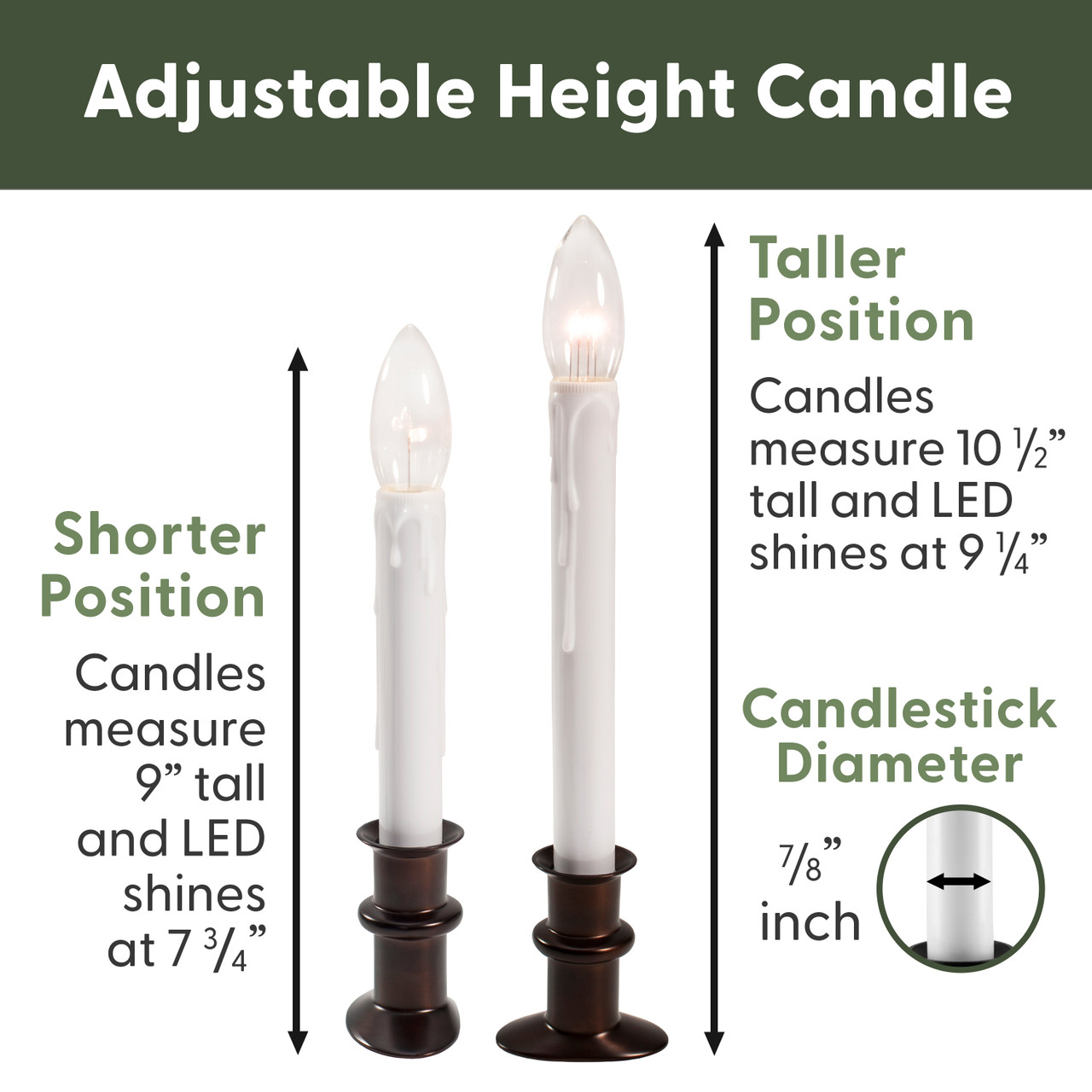 - Total Candle Height: 9 inch (short position), 10.5 inch (tall position)