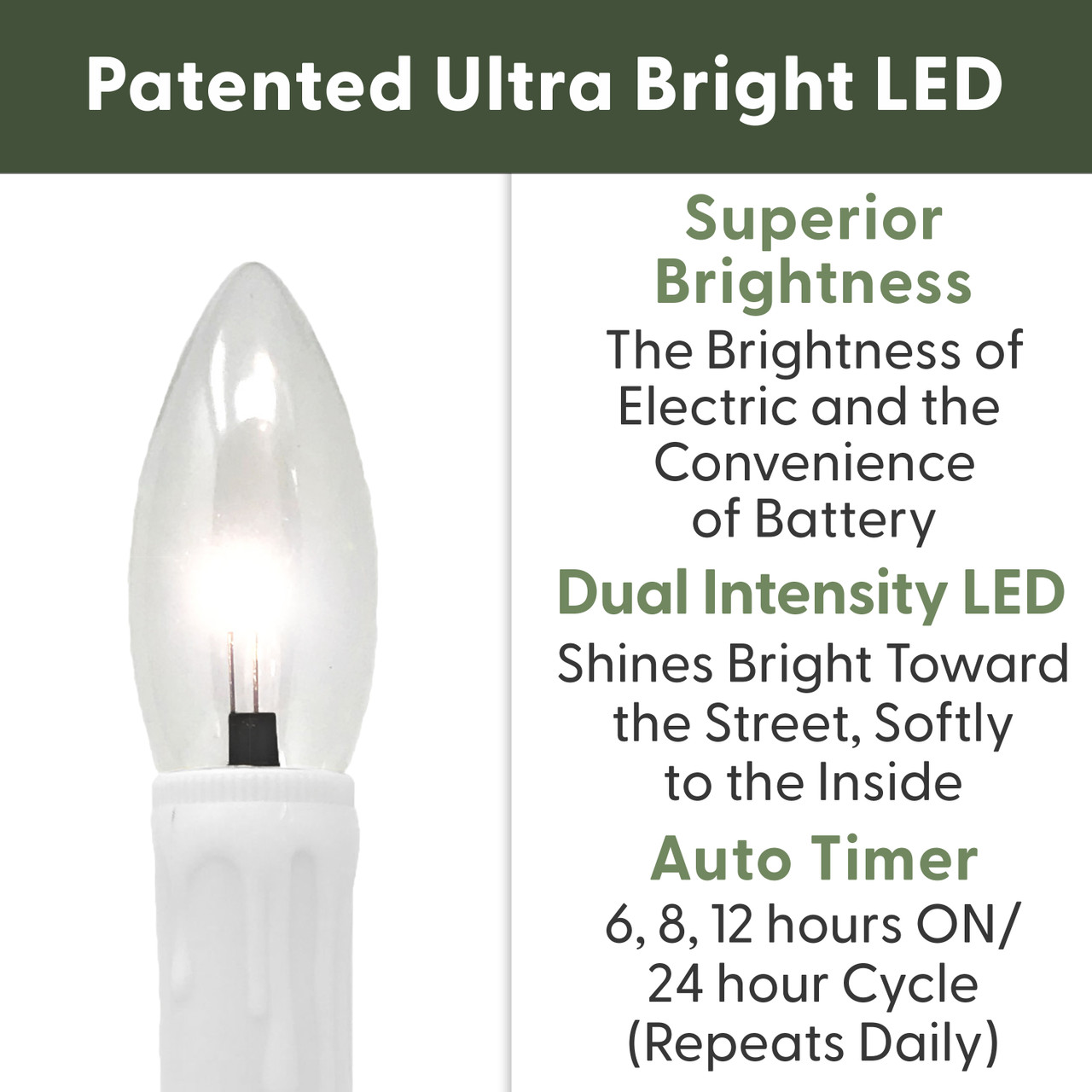 - PATENTED DUAL INTENSITY LED BULB: Unique design allows for the candle to shine bright outside, and soft inside your home.