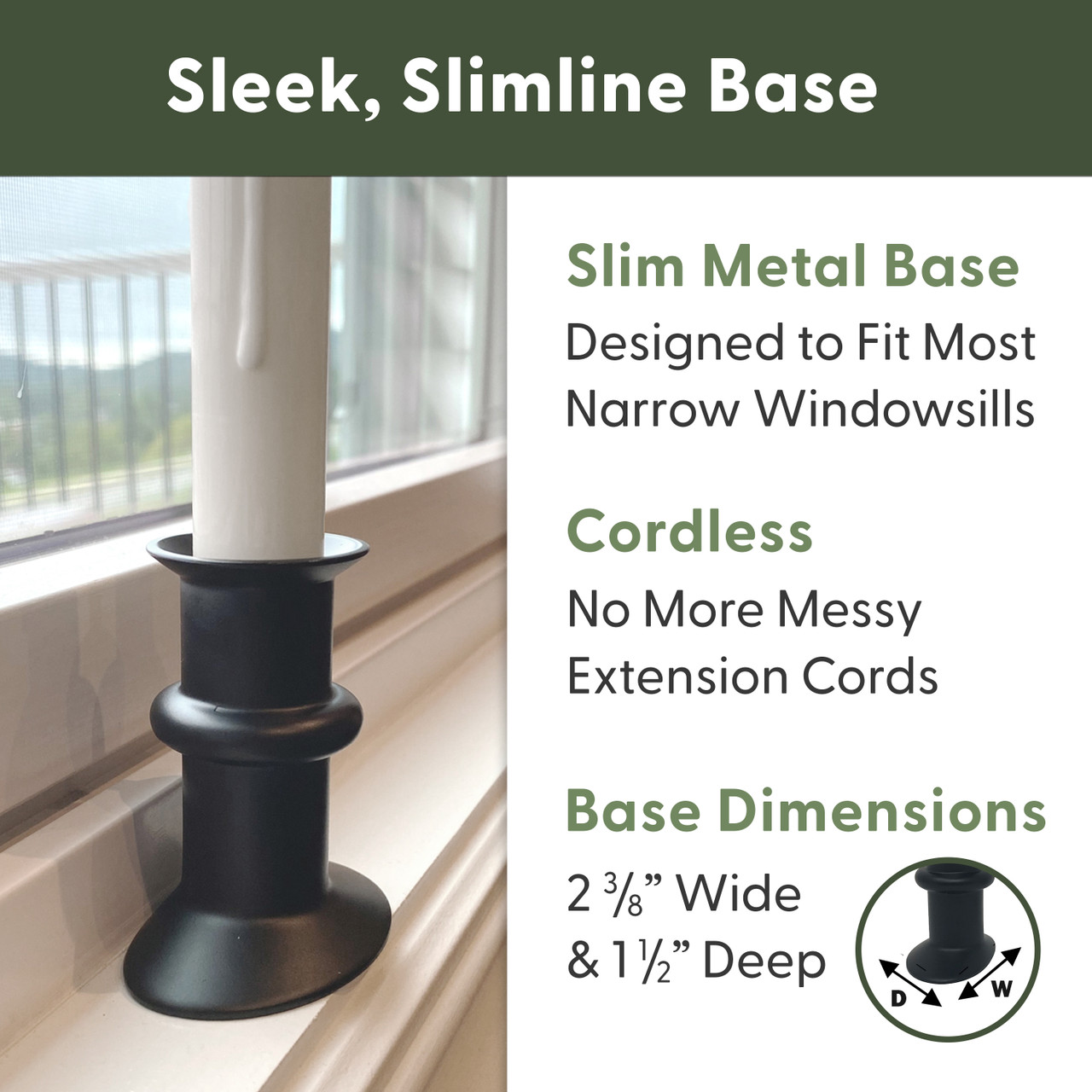 - SLIM-FIT WEIGHTED BASE: The heavy weighted metal base prevents tipping and fits securely even on narrow windowsills. Available in four finishes (Satin Nickel, Brushed Onyx, Antique Bronze, Polished Brass).