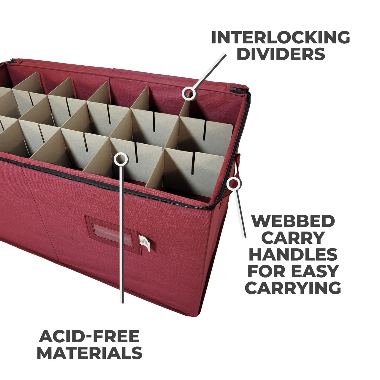 - DIVIDER SLOTTINGS: Each divider has slottings at every 2" to allow for precise compartment configuration. Remove and move dividers to fit your ornaments.