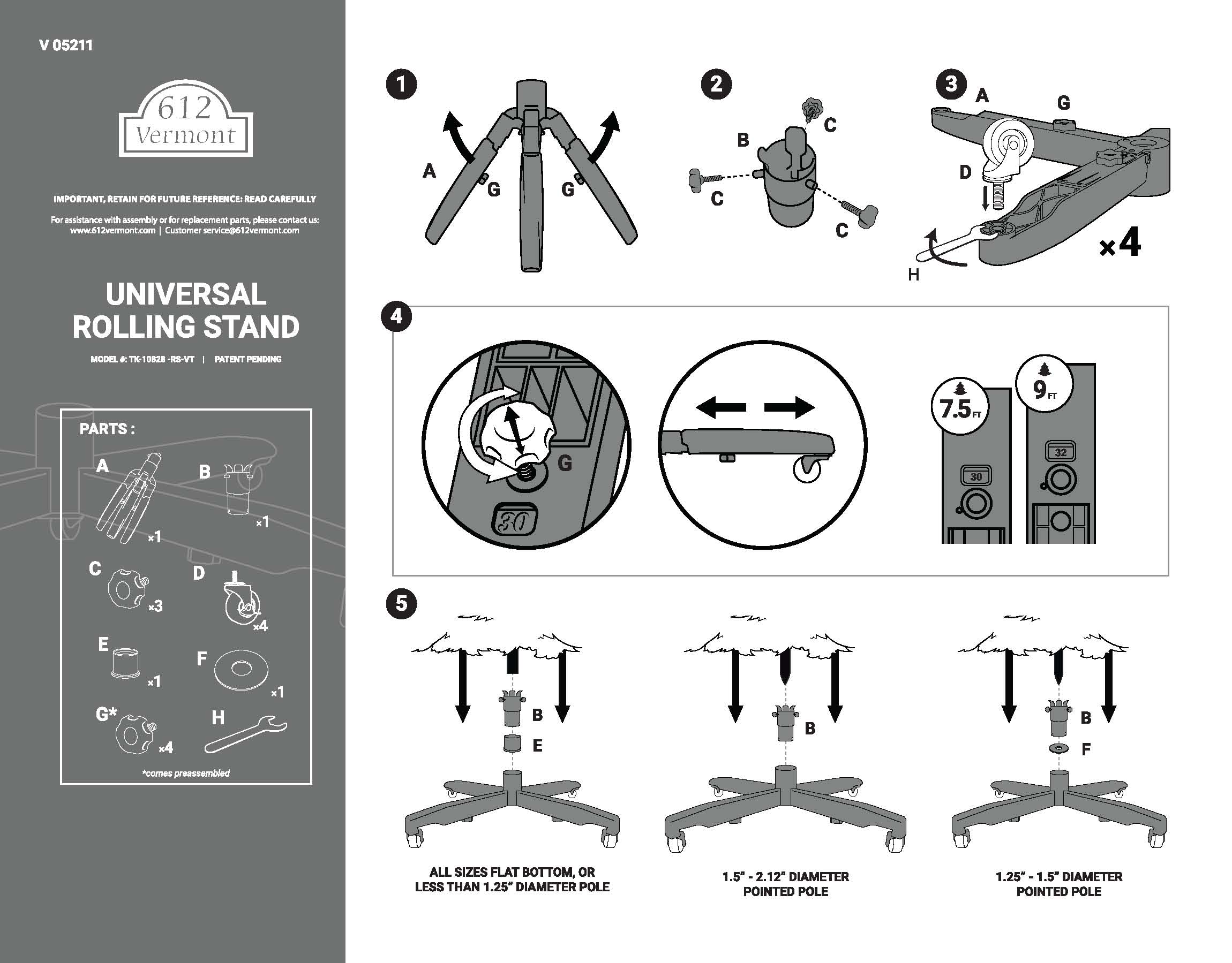 This rolling tree stand is sturdy and easy-to-use! Holds artificial trees up to 9 feet tall (220LB weight capacity) and trunks from 1.25" to 2.125" in diameter.  Once the tree is installed, it is effortless to twist and roll; making it easier to decorate and move into position. The rolling stand makes it possible to decorate your tree in the center of the room and then roll it back against the wall for placement for the holidays. Designed in the USA, made in China.