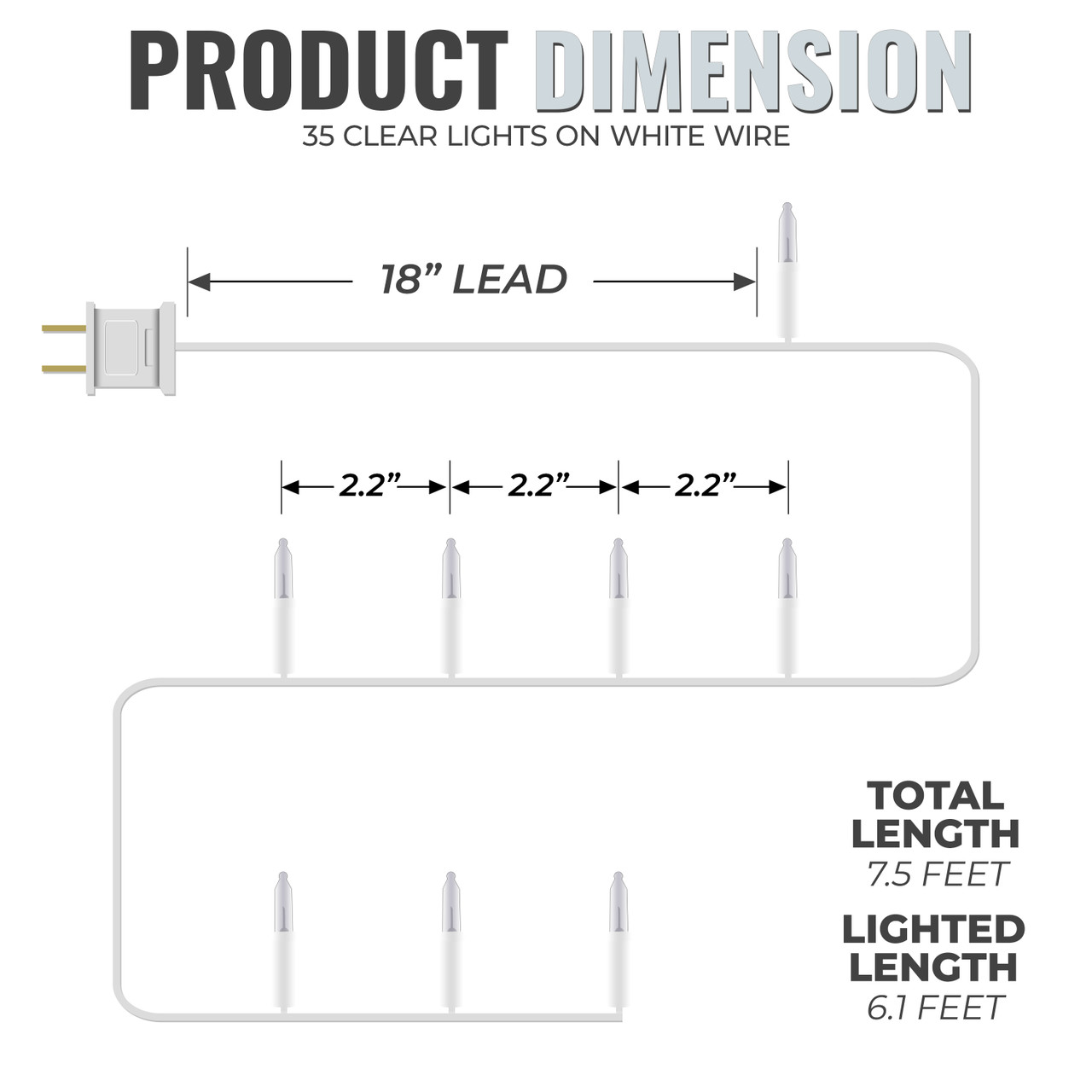 - 1.5 Foot lead from plug to first light. Only one end with plug (male/female plug)
