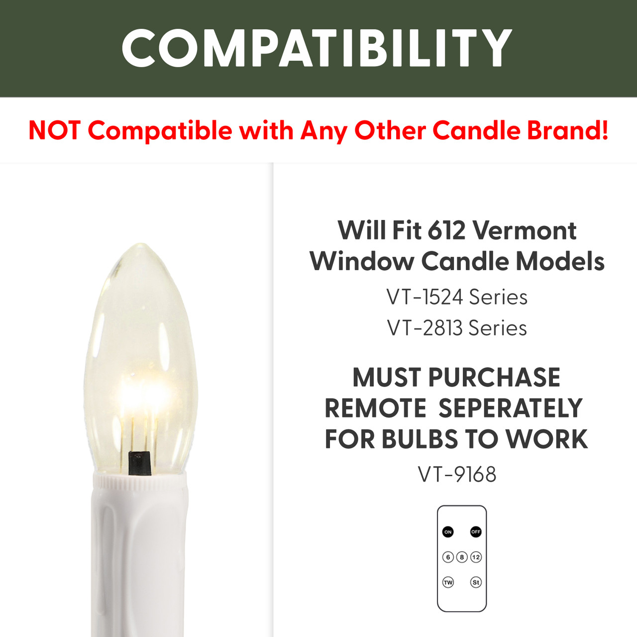 - Programmable Ultra-bright LED replacement bulbs for 612 Vermont brand (9167 series) SLIMLINE candles.