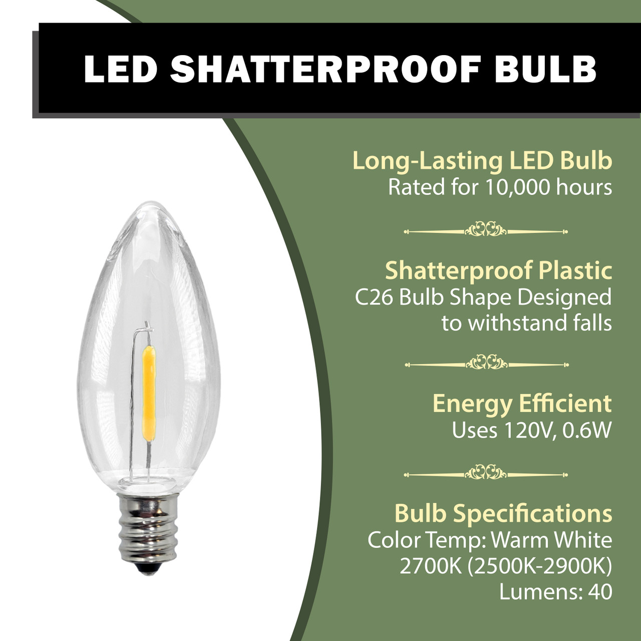 Bulb Shape: C26 (1” wide, 2-1/4” tall, 2 7/8" tall with screw in base).